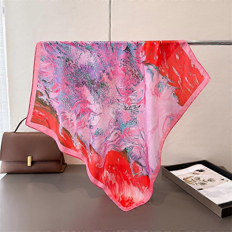 Small 70cm Square Elegant Floral Print Silk Scarf for Women Designer Hijab Bandana Shawl Spring Summer Luxury Hair Band