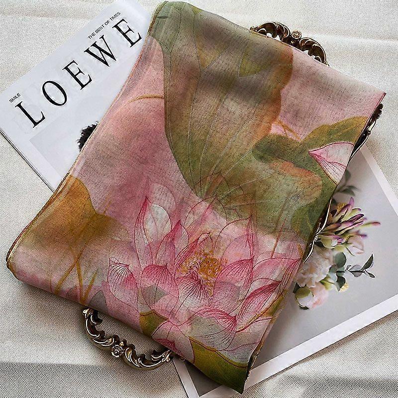 New Fashion Green Grass Women Chiffon Individuality Lotus Flower Georgette Bandana Scarf Summer Beach Sunscreen Thin hijab