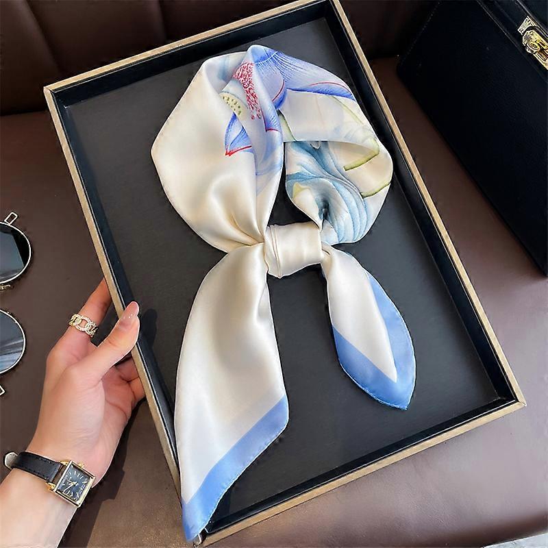 Luxury Women's Summer Silk Scarf Vibrant Lemon Printed with Flowers Scarves Bright Yellow Piping Edge 70x70cm Bandana