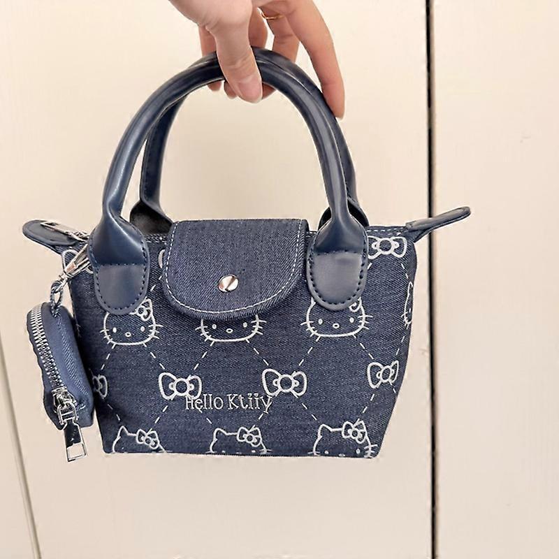 New Spring Hello Kitty Denim Print Handbag Cute Mini Dumpling Crossbody Bag For Women Girls Fashion Shoulder Purse Gift Idea
