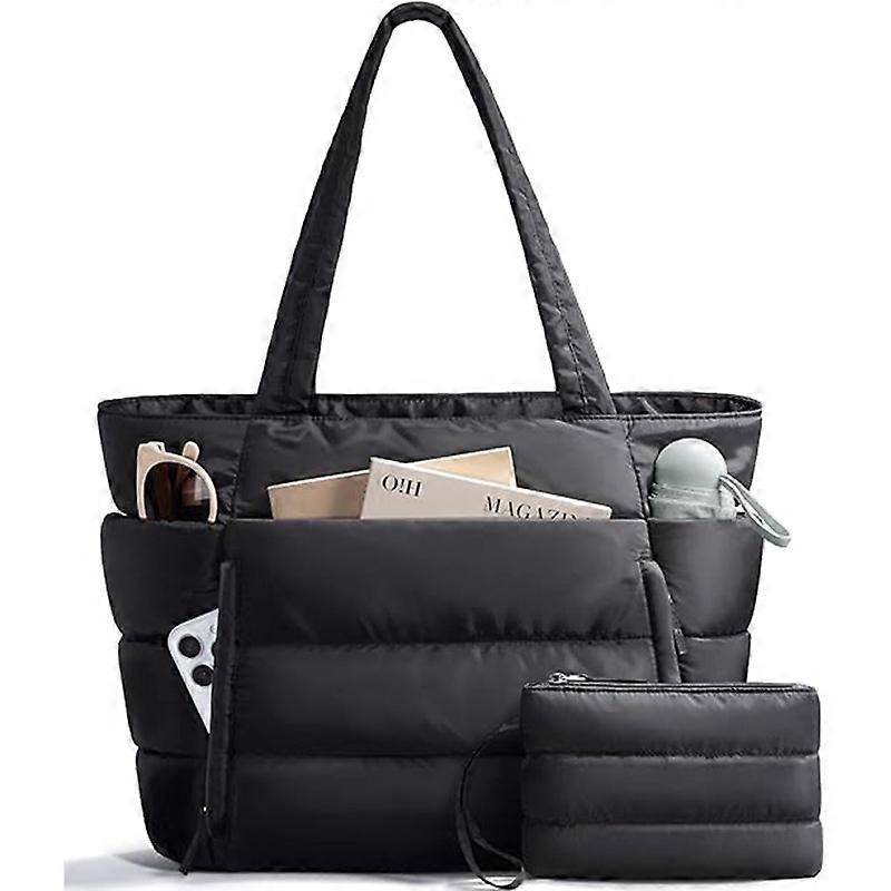 Trendy women's tote bag with multiple compartments, quilted design, perfect for short trips.