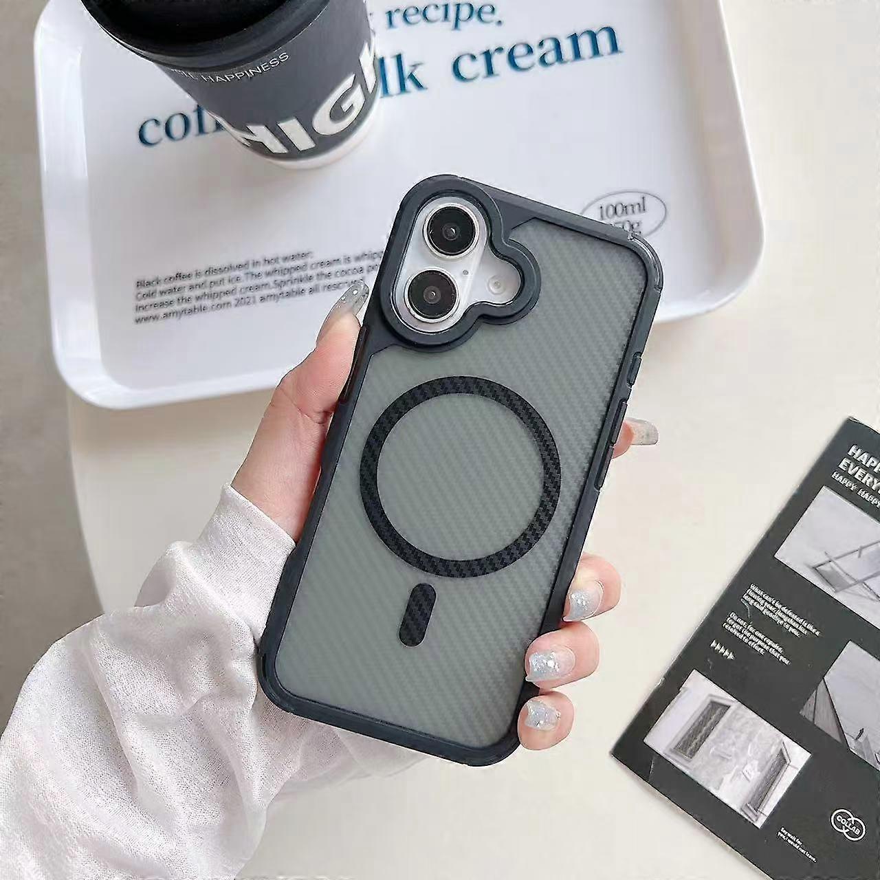 Carbon fiber textured phone case for iPhone 16, shockproof magnetic case for Apple 15 Pro Max, frosted finish.