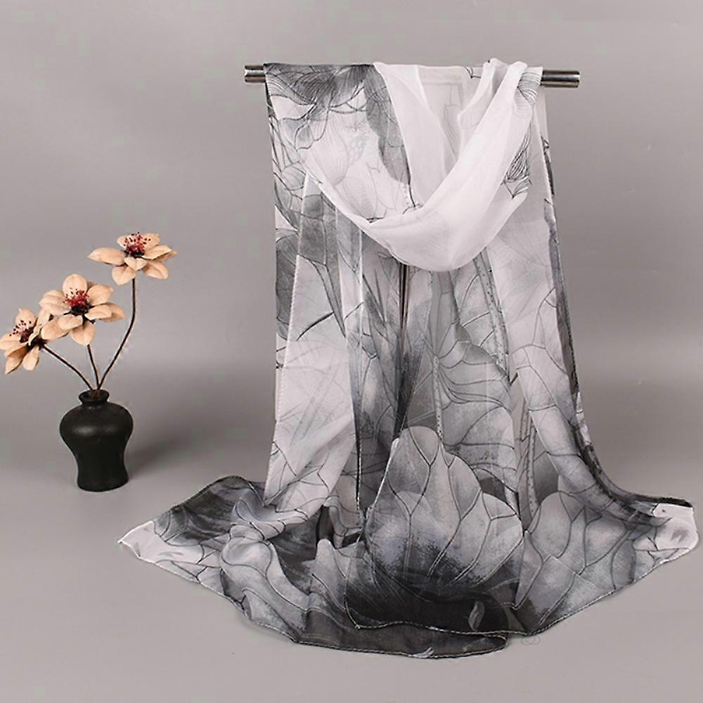 Fashion 50*160cm Silk Scarf Lotus Pattern Satin Surface Printed Scarves Luxury Brand Design Long Shawl For Women Girls