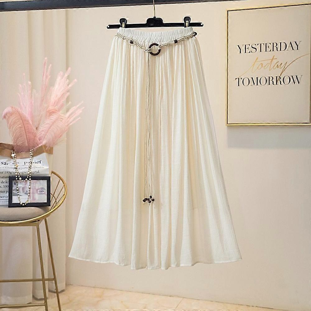 Casual Vintage Boho Women's Skirt Luxury with Belt High Waist Skirt Cotton Linen Elegant Design Long Skirt for Women