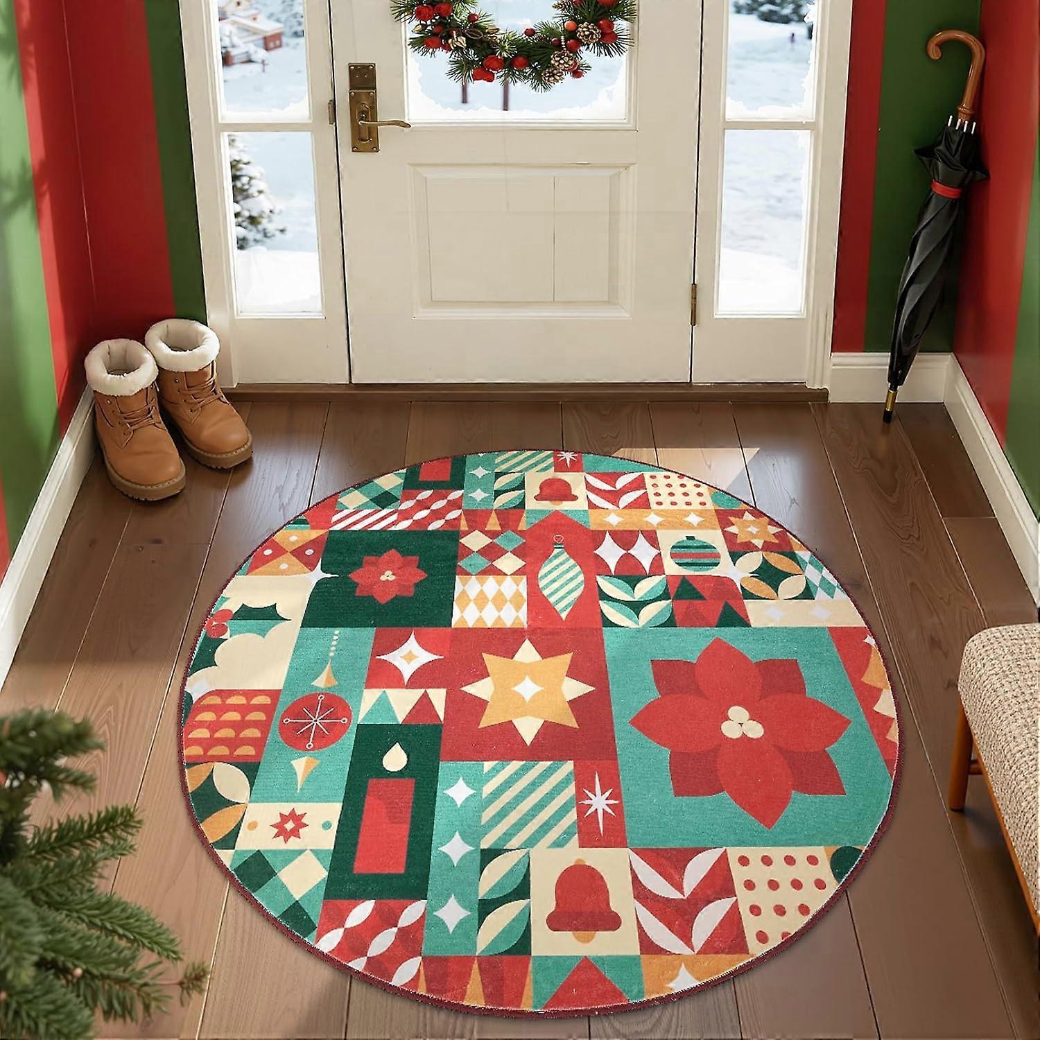 Round Nutcracker Soldier Carpet Striped Children's Room Carpet Home Party Decoration Christmas Cartoon Carpet Door Mat Entrance