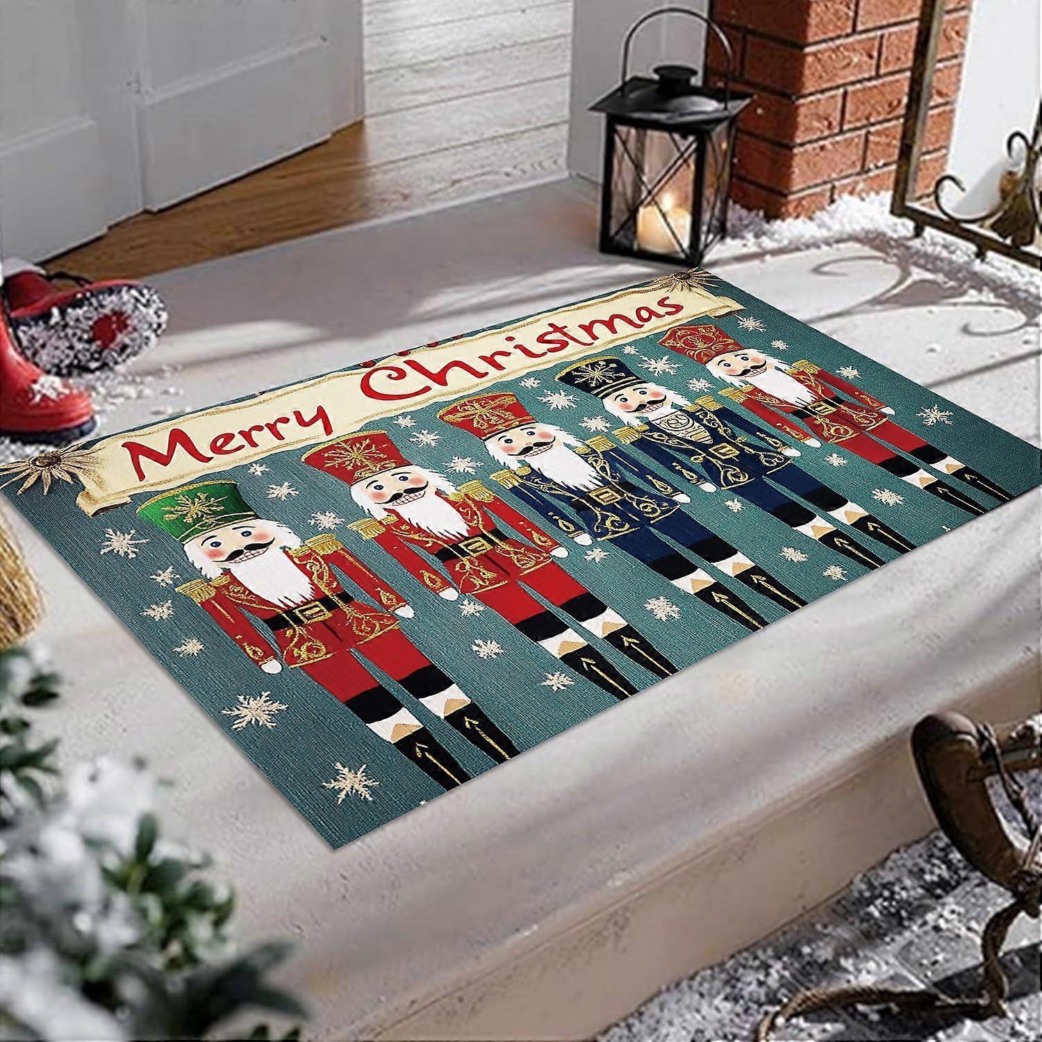 Christmas Nutcracker Welcome Mat Non-Slip Machine Washable Carpet Doormat for Living Room Bedroom Kitchen Indoor/Outdoor Rug