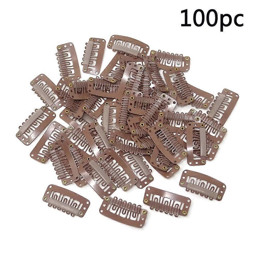 100 PCS Light Brown Hair Extension Clips Hair Extension Wigs Snap Clips Comb Small Snap Wig Accessories for Women DIY