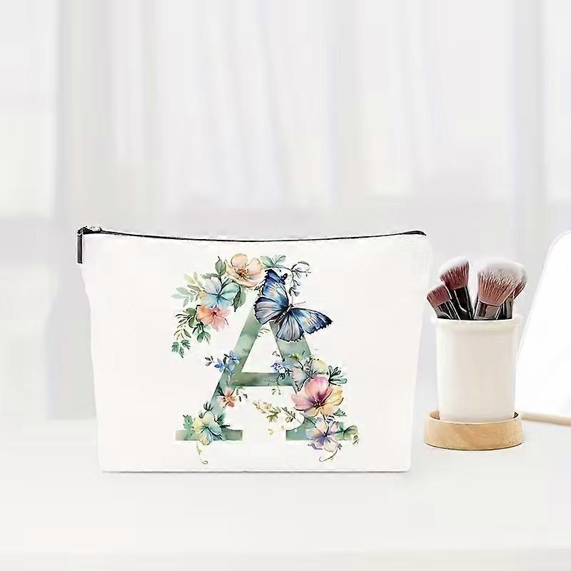 Letter and floral pattern storage bag | Travel cosmetic bag with zipper closure, toiletries bag