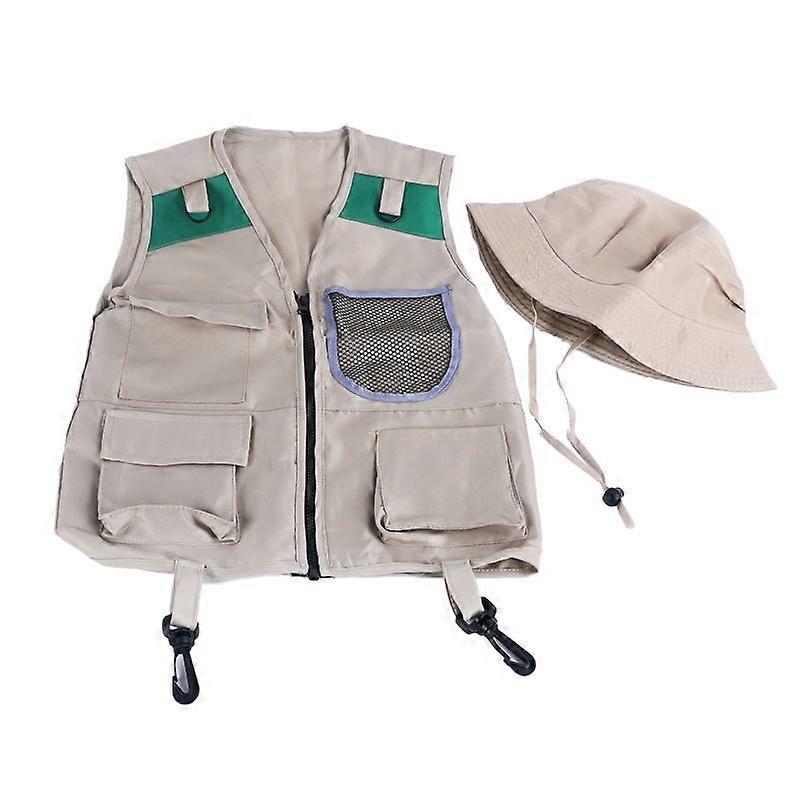 Children Outdoor Adventure Clothes Utility Vest Fisherman Hat Set Stage Costumes Stylish Summer Camping Hiking Outfits for Boys