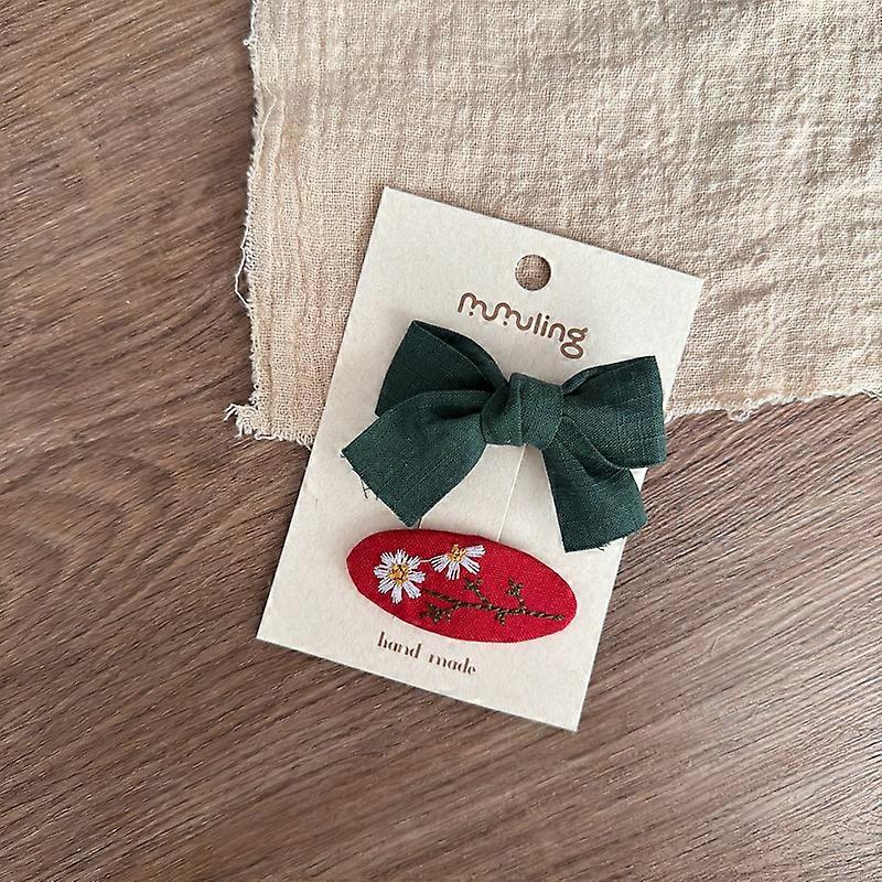 Baby Girl Hair Clips Princess Gift Set 2pcs Bowknot Embroidery Barrettes Sweet Solid Color Hair Accessories