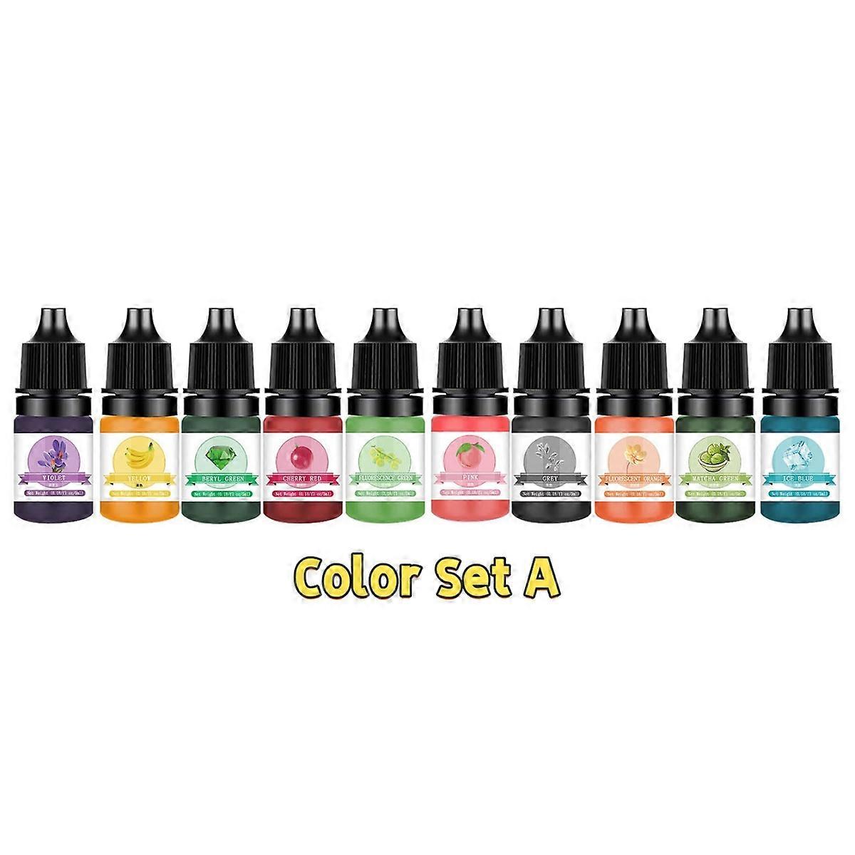 10 Colors/Set Translucent Concentrated Resin Colorant, Non-Toxic Epoxy Resin Pigment Dye Liquid for Resin Coloring, Jewelry Maki