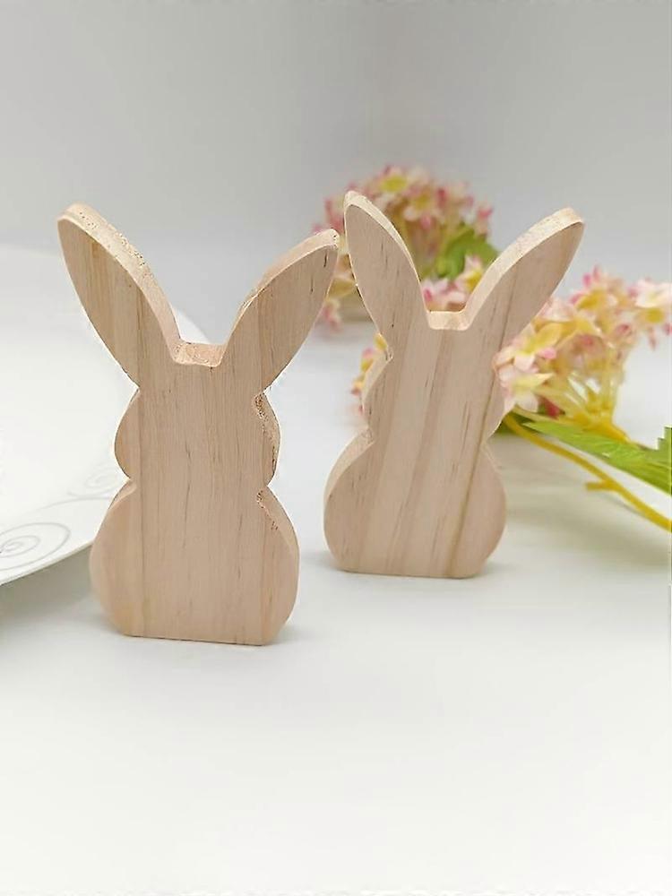 2-Piece Set of Wooden Rabbit Figurines for Window Display, Bookshelf, Desktop, Small Statues for Birthday, Spring, Holiday, and Easter Decor