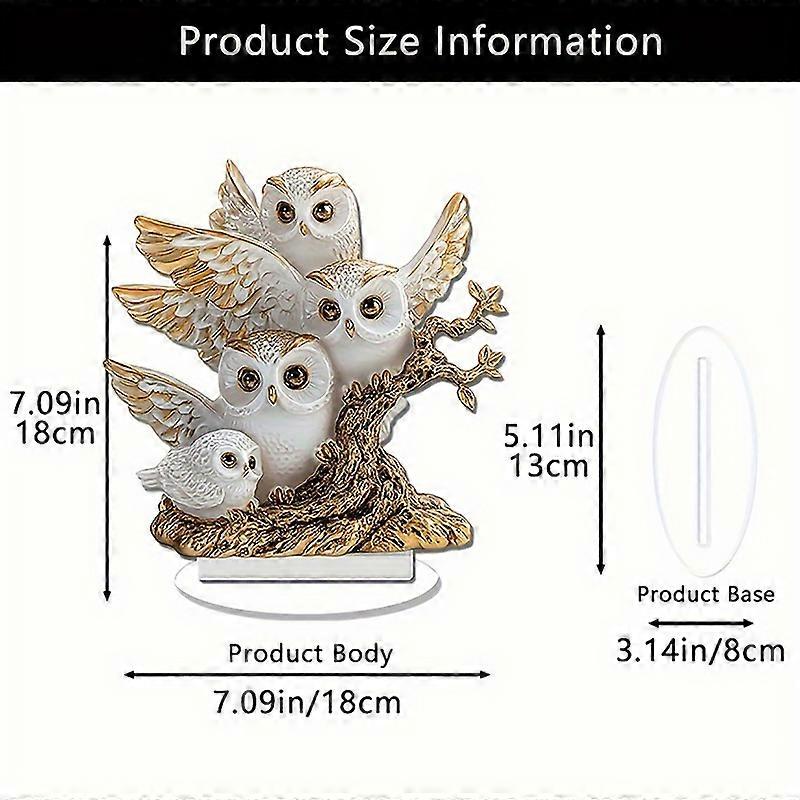 1PC Owl Family Statues 2D Flat Acrylic Figurine Home Office Cafe Room Studio Display Case Table Ornament Desktop Decor Kit