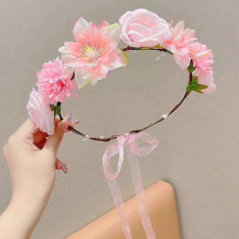 Princess Girl Children Kids Artificial Flower Hair Hoops Bridal Wedding Floral Wreath Headdress Headband Hair Accessory