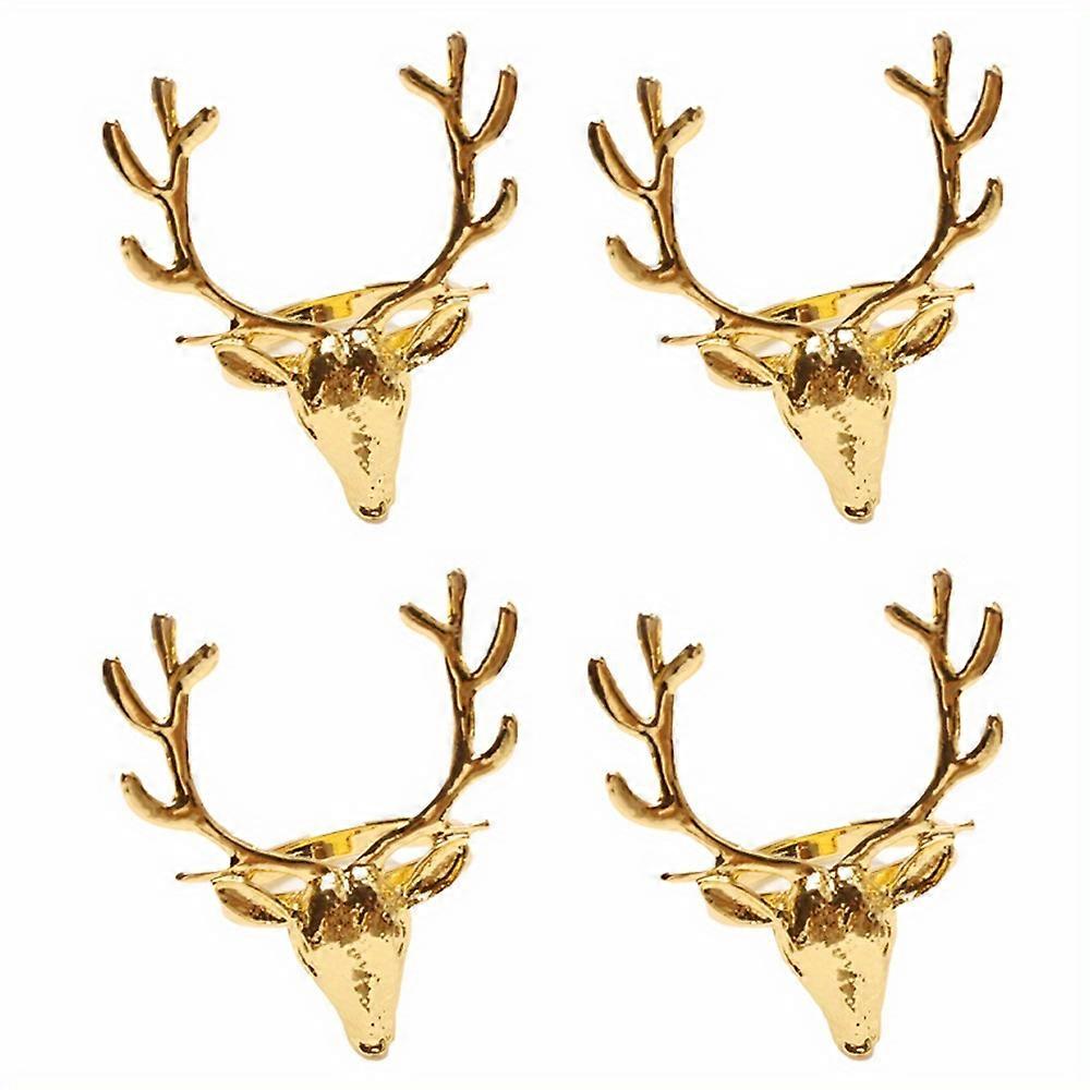 4Pcs Deer Napkin Rings Christmas Elk Head Napkin Rings Holders Reindeer Napkin Buckle Xmas Thanksgiving Dining Table Decor