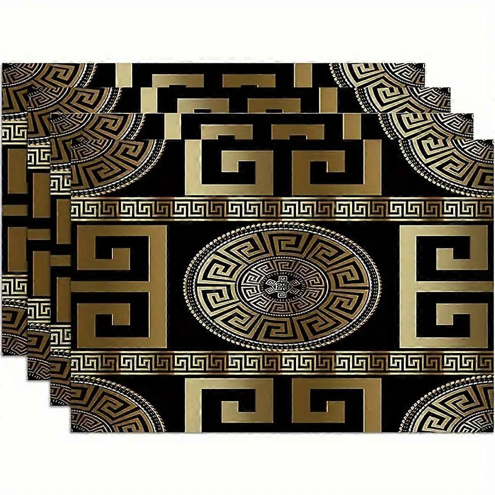 Elegant Geometric Placemats - Luxurious Black / Gold, Durable Waterproof Table Mats compatible with Home Decor - Greece-Inspired