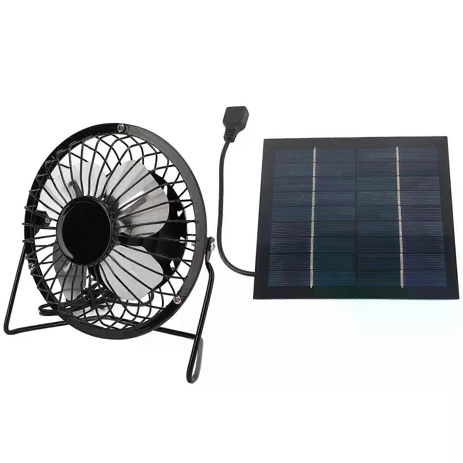 5W Mini Solar Panel Powered USB Cooling Iron Fan Power Bank Fan for Home Office Outdoor
