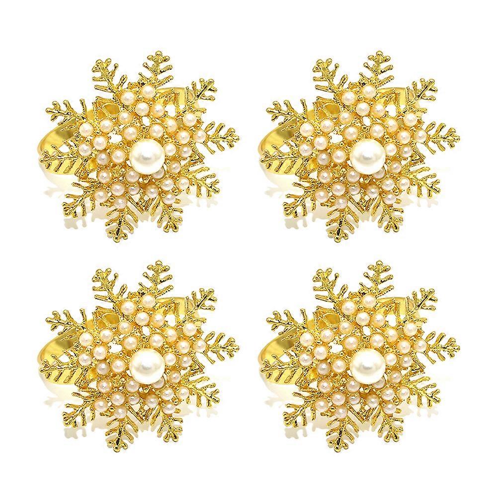 4/6/8Pcs Christmas Snowflake Napkin Rings Pearl Metal Napkin Ring Holder for Xmas Table Setting Winter Wedding Decor New Year