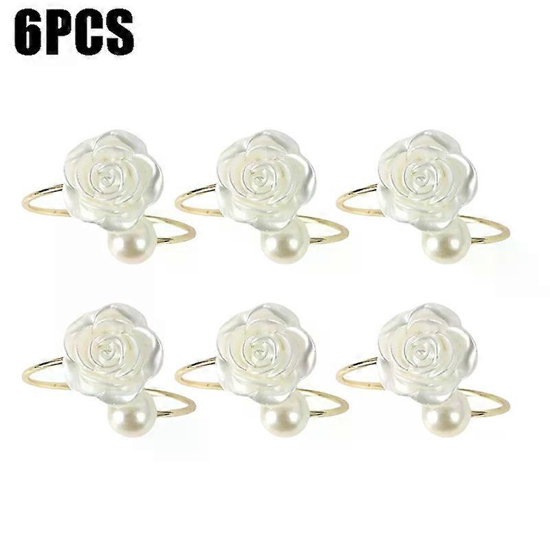 1-96PCS Valentine's Day Wedding Pearl Napkin Ring Rose Flower Creative Round Pearl Napkin Ring Wedding Table Decoration