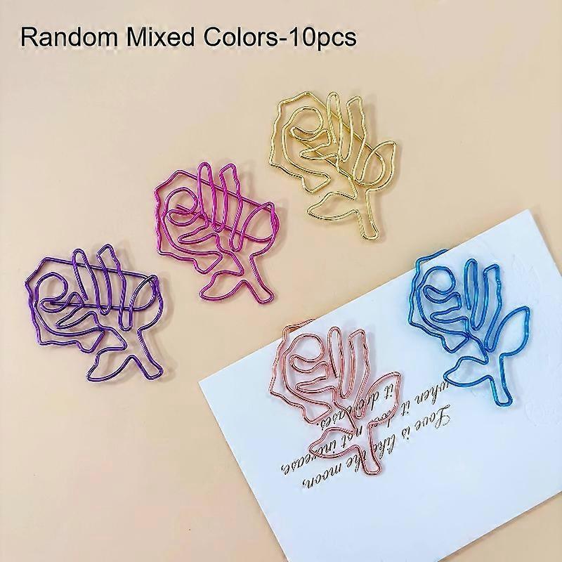 10pcs Rose Shaped Paper Clips Colorful Metal Clips Office School Supplies Organizing Documents Craft Metal Clips Office Supplies