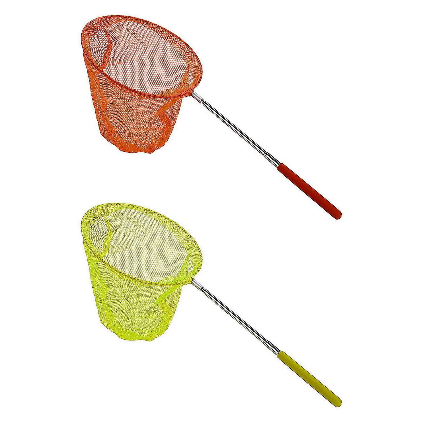 2 Pcs Outdoor Catching Butterfly Net Fishing Net Bag Stainless Steel Telescopic Fishing Net Tool - Yellow & Orange