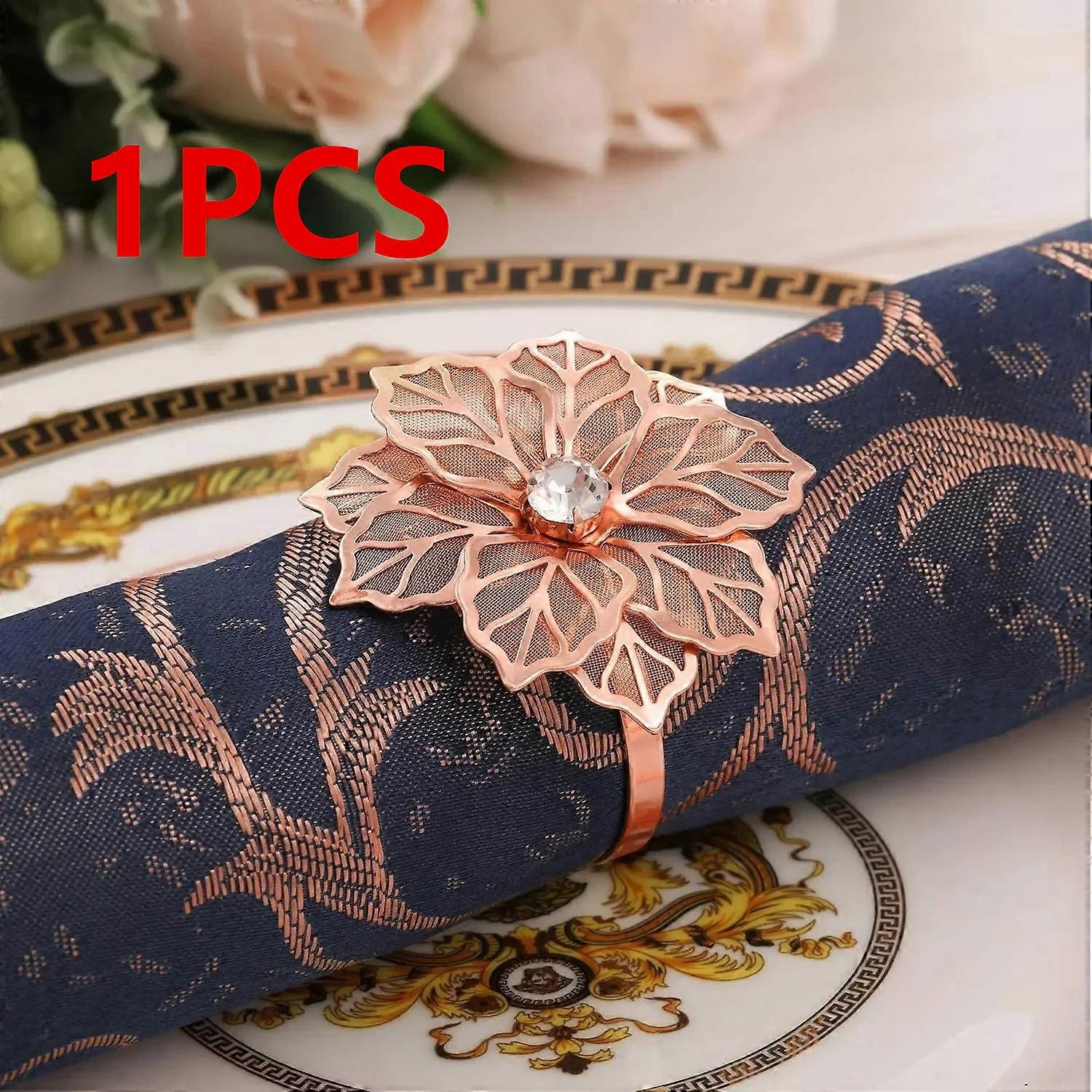 1/6Rose Flower Napkin Holder Floral Rhinestone Napkins Rings for Wedding Christmas Party Dinner Table Decor