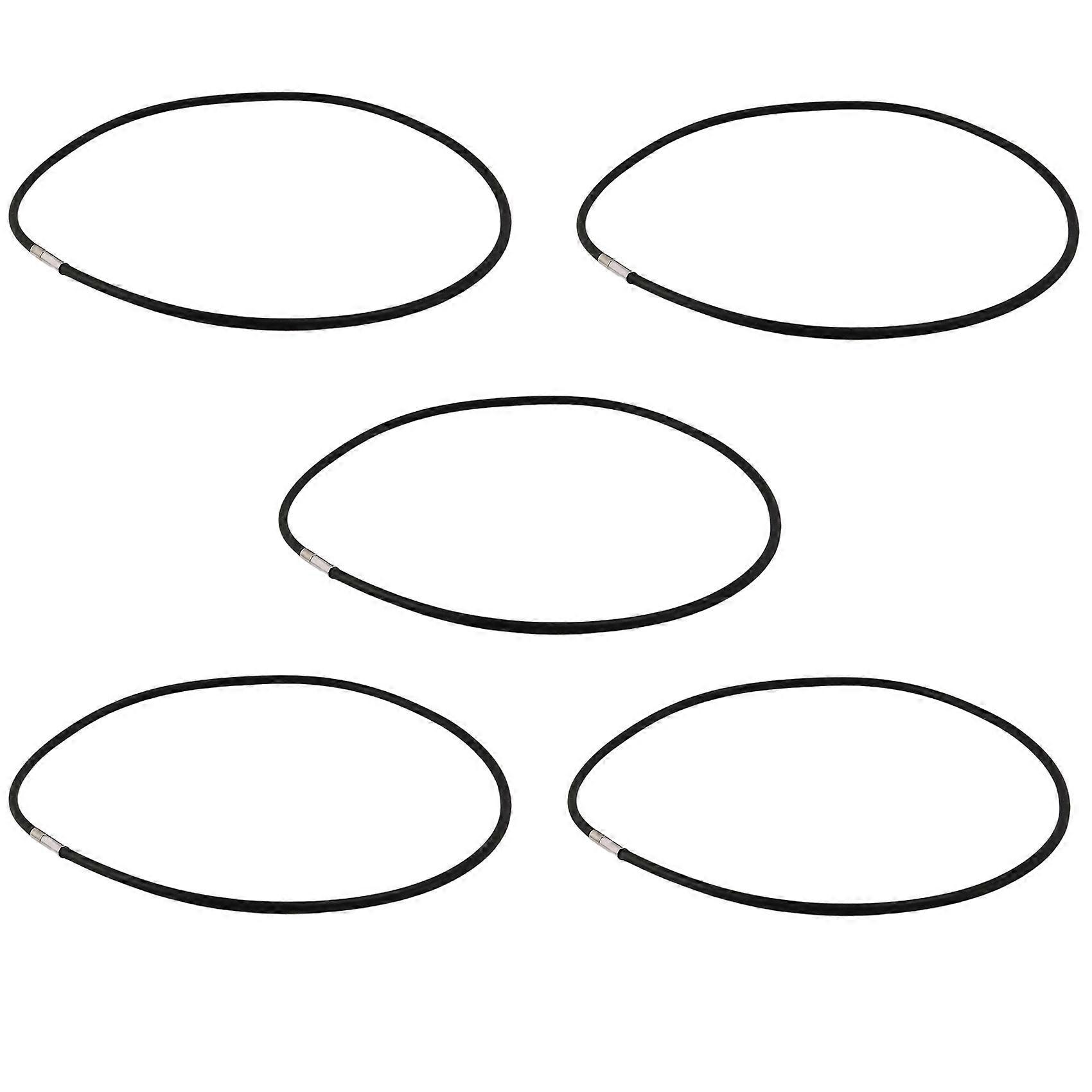 5pcs 3mm Black Rubber Cord Necklace with Stainless Steel Closure - 18 Inch
