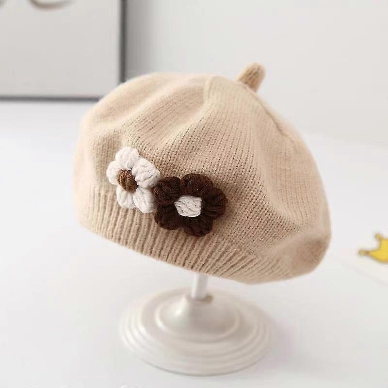 Kids Winter Beret Solid Color Flower Hat Vintage Knitted Design Warm Baby Cap Girls Autumn Fashion Accessory
