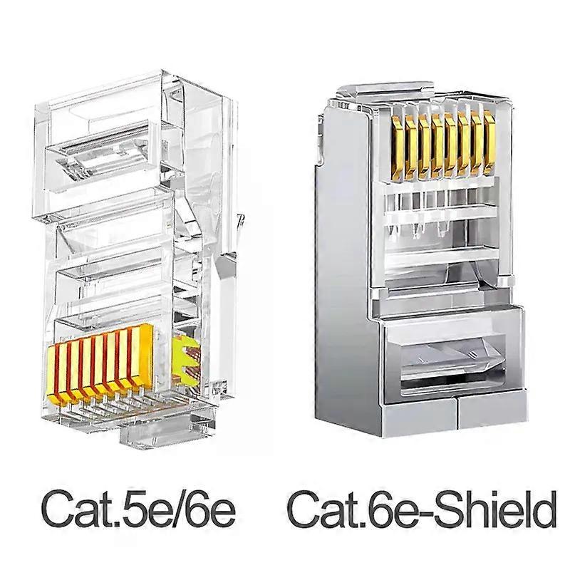 100Pcs/Box Gold Plated RJ45 Plug Network Crystal Head Gigabit Ethernet Cable Connector Cat5e/Cat6e with Shield