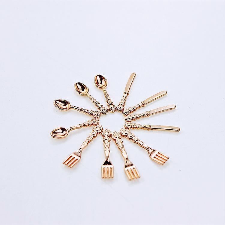1:12 Scale Dollhouse Miniature Vintage Metal Tableware Set 12Pcs Mini Knife Fork Spoon for Doll House