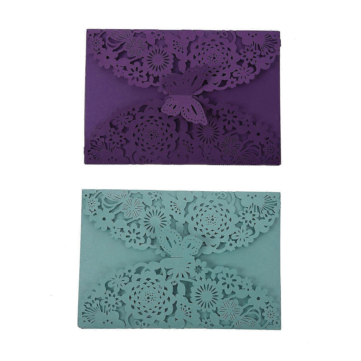 20Pcs Delicate Carved Butterflies Romantic Wedding Party Invitation Card Envelope Invitations for Wedding, 10Pcs Purple & 10Pcs Blue Green