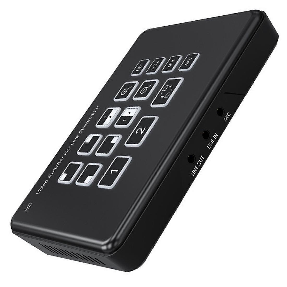 2 Way HDMI-Compatible Video Switcher Mixer 2 in 2 Out for Live Streaming with Mic Line in Audio Mixing EU Plug
