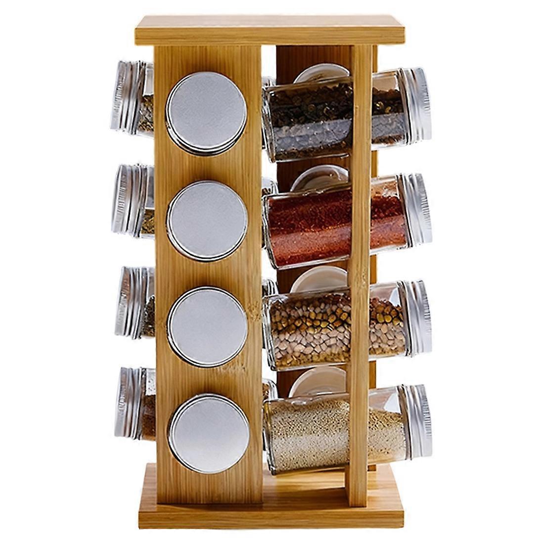 Wooden Kitchen Condiment Rack Rotatable Fragrance Finishing Rack Multi-Layer Seasoning Bottle Storage Rack