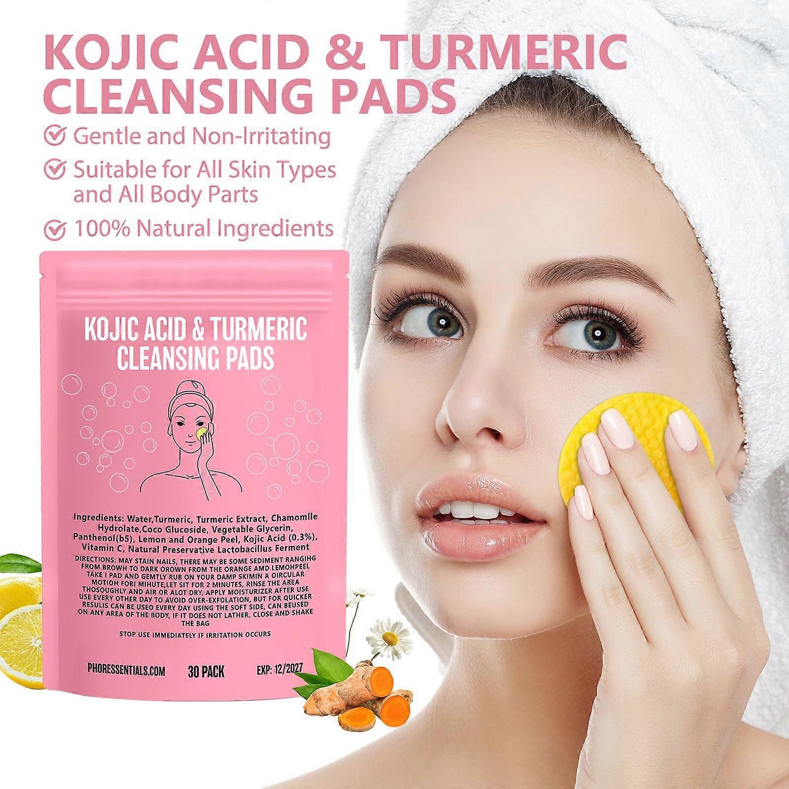 Kojic acid gently cleanses pores without leaving skin feeling tight; daily skincare routine includes moisturizing and brightening. Turmeric