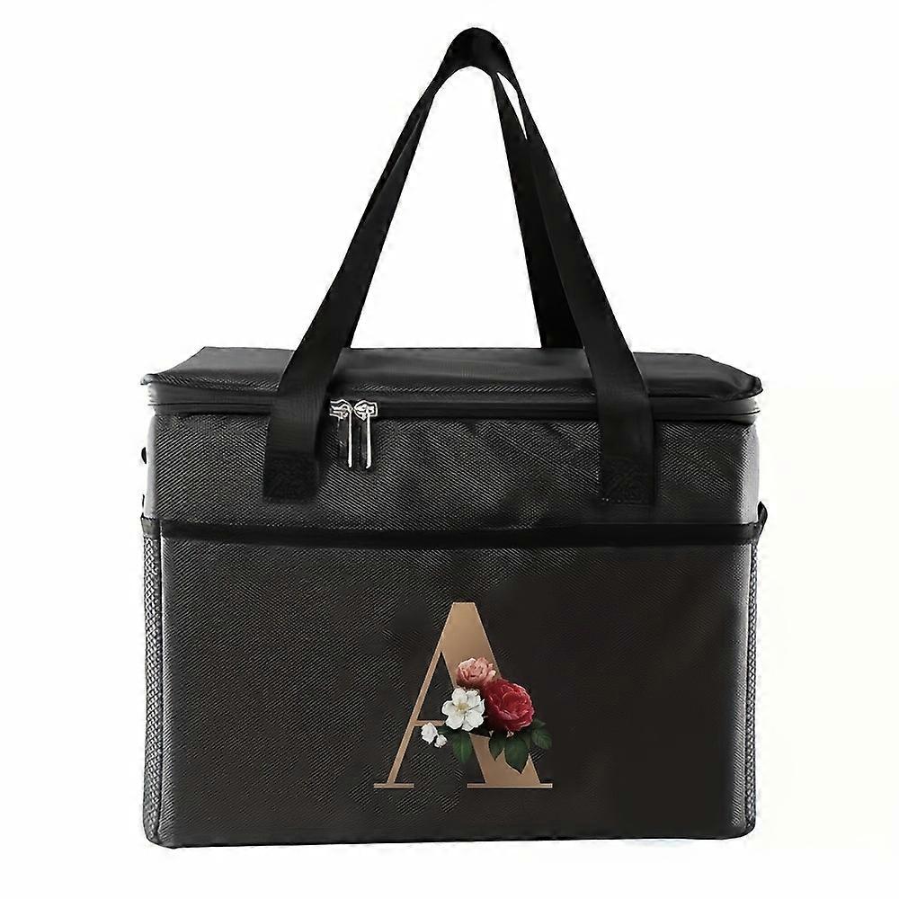 Golden floral 26-letter lunch bag, outdoor folding picnic cooler bag, crossbody bag, large capacity, hand-held insulated bag