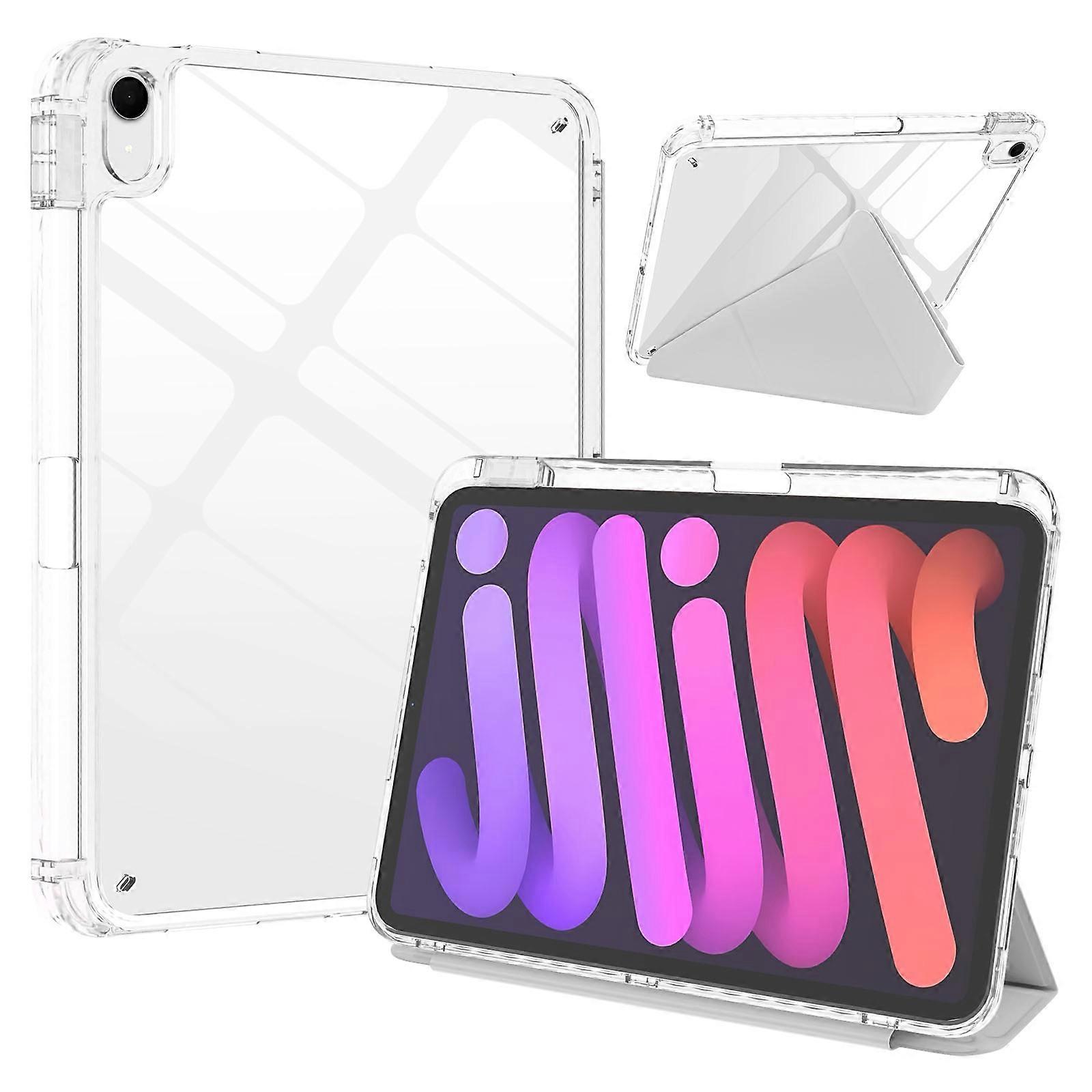 For iPad (2025) 10.9 (2022) Case Magnetic Closure Origami Stand Leather + TPU + Clear Acrylic Detach