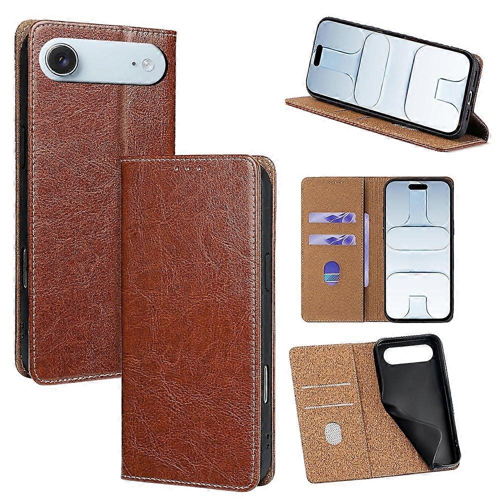For iPhone Air Case Genuine Cow Leather Stand Mobile Phone Cover with RFID Blocking Wallet - Light B