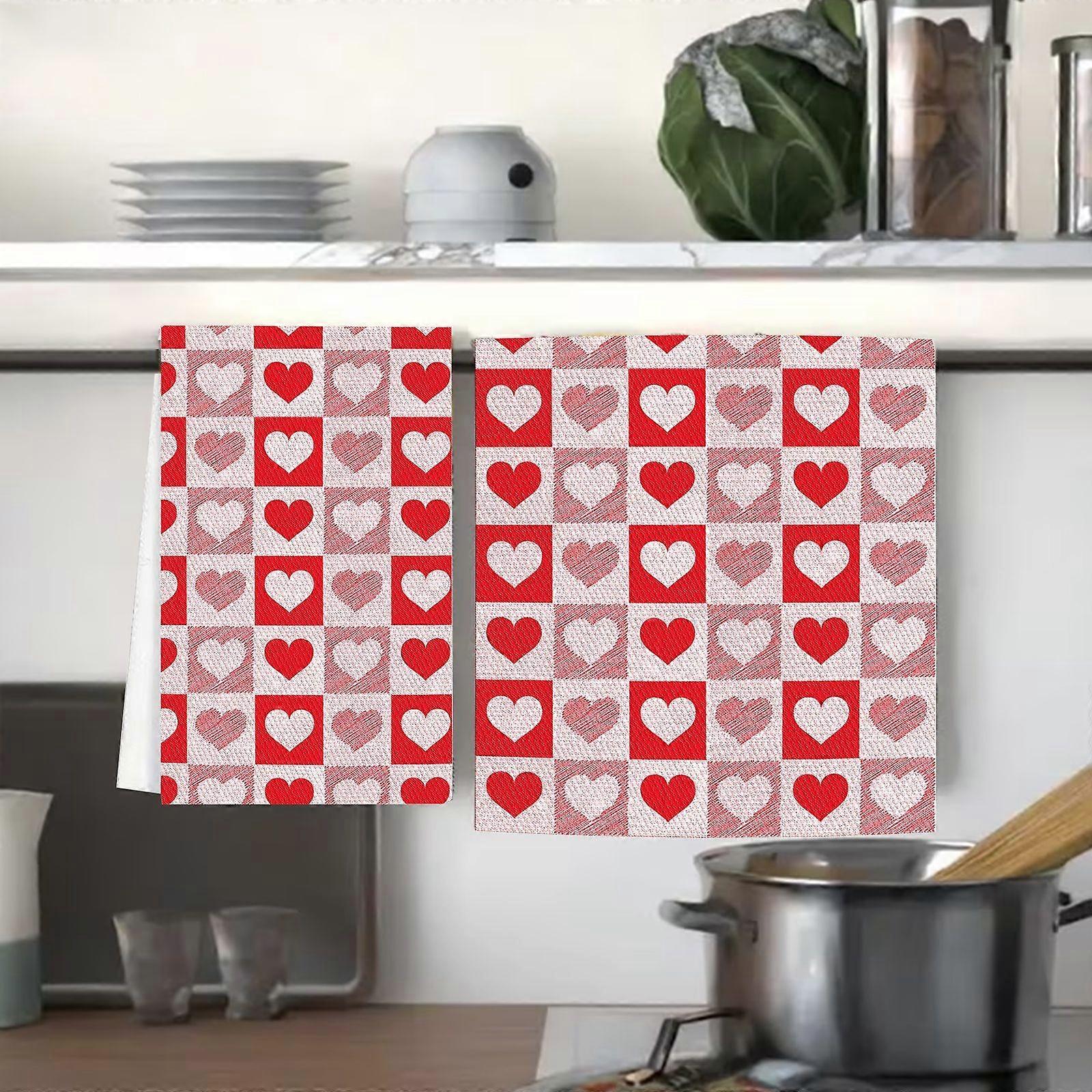 Set of 2 Valentine's Day rose vase tea towels, perfect for countertop decoration