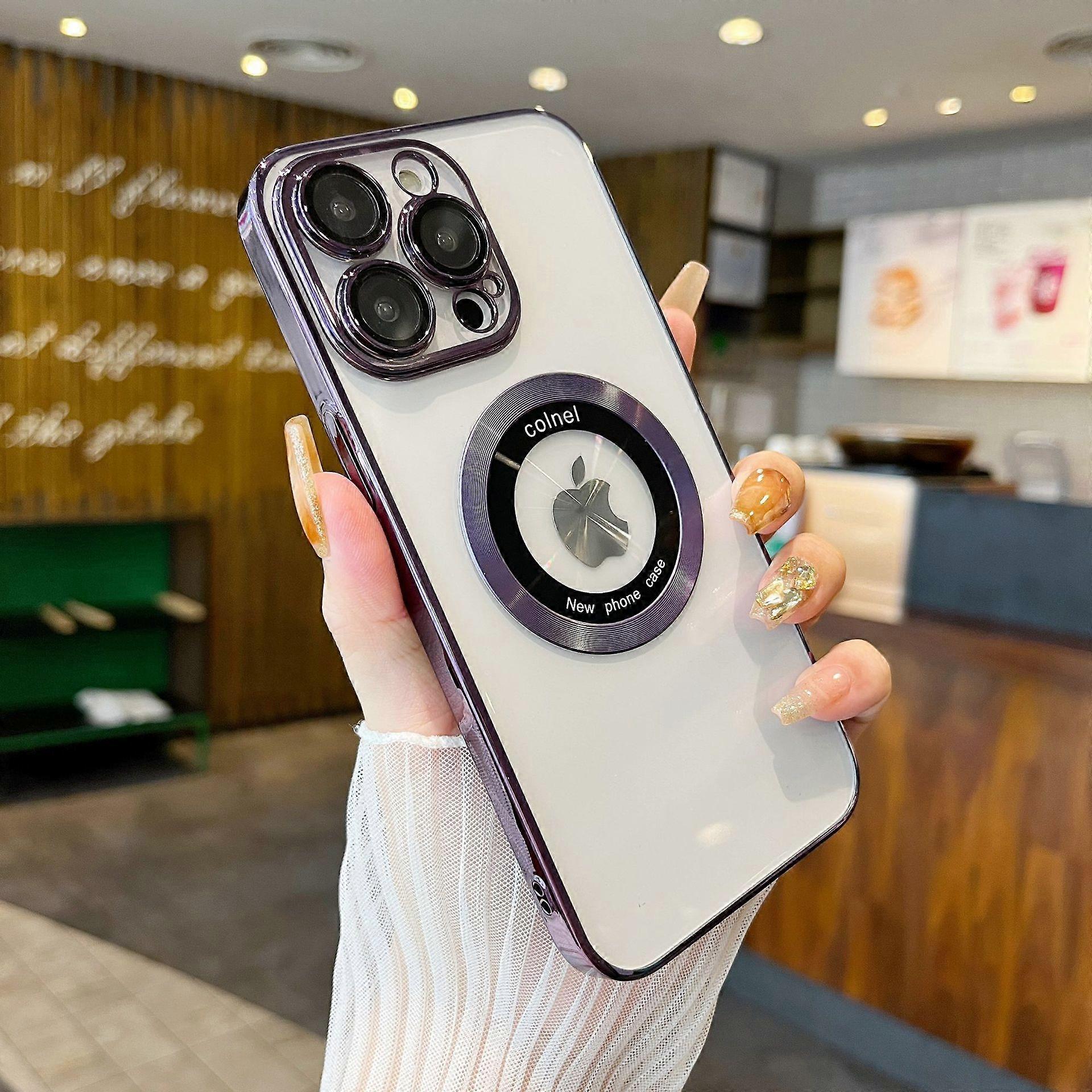 iPhone 15 Pro Max magnifying glass magnetic case for missing labels, suitable for 14-inch electroplated phone cases, Apple 13 protective cas