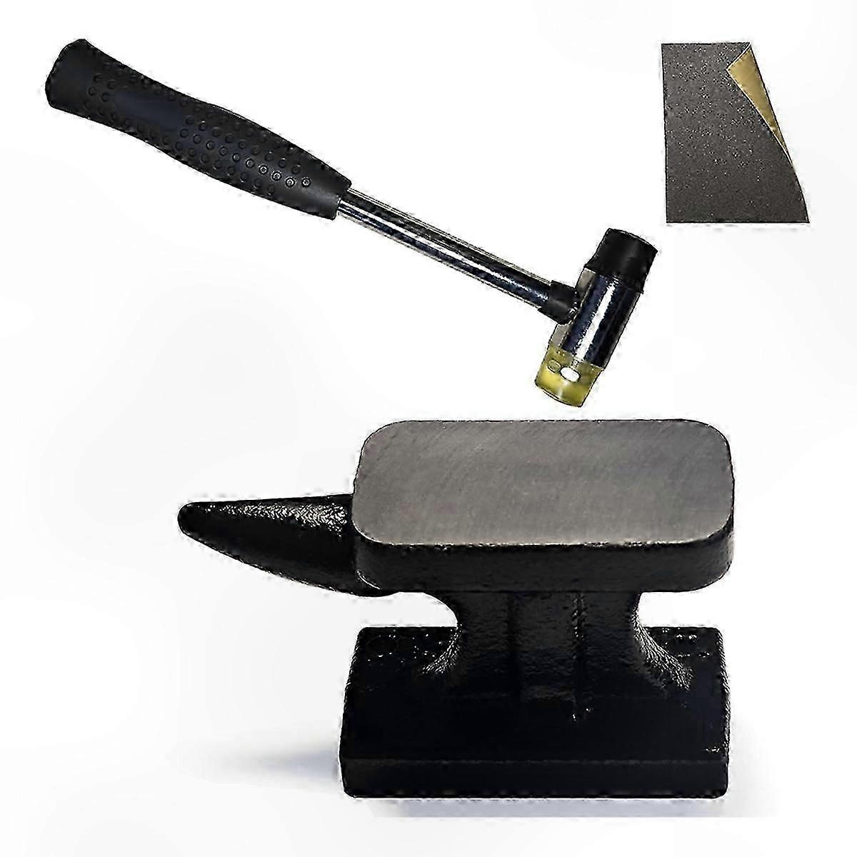 Forged Iron Anvil and Hammer Kit, 1.15 Lb Mini Horn Anvil with Rubber Mallet, Ideal for Metal Stamping and Silversmith Projects