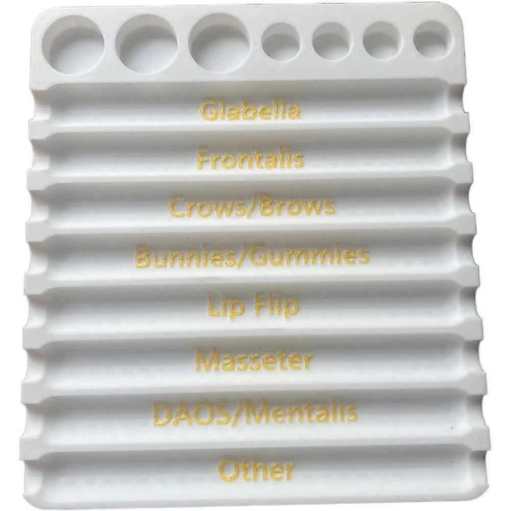 Specifically designed for aesthetic professionals, this 8-slot syringe tray enhances workflow efficiency.Generous design with 8 flutes and 7 storage boxes offers ample room for organized storage of multiple syringes.Equipped with dedicated slot labels for easy identification of syringe contents, streamlining the preparation process.Each slot is meticulously crafted to securely hold syringes in place, preventing accidental tipping or spillage.Maintains a clean and safe working environment; simply wipe it down after use to keep its pristine appearance.Essential Aestheticians: This syringe tray caters to the unique needs of beauty practitioners, ensuring a perfect fit for their workflow.Color: WhiteMaterial: PLAPackage Contents:1pc * Aesthetic Practitioner Syringe TrayOnly the above package content, other products are not included.Note: Light reflection and different displays may cause the color of the item in the picture a little different from the real thing. The measurement allowed error is +/- 1-3cm.