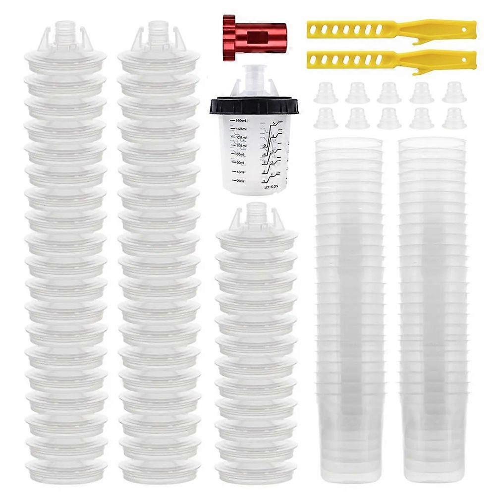 50Pc Disposable Spray GunCup Paint Mixing Cup H/O Quick Cup Paint System Airbrush Tank 160ML Adapter&Paint Stir Sticks