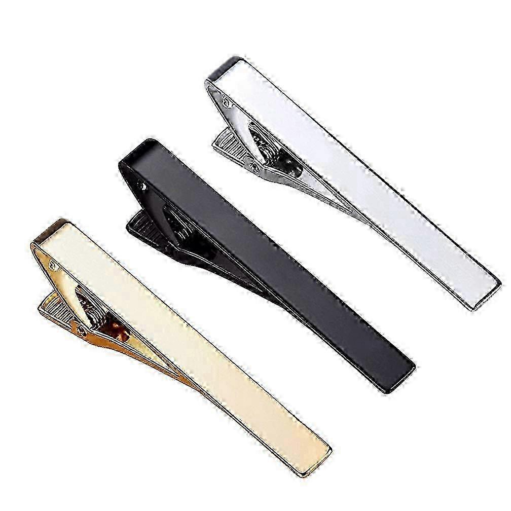 Men's Business Accessory: 3-Piece Tie Clip Set in Silver, Gold & Black