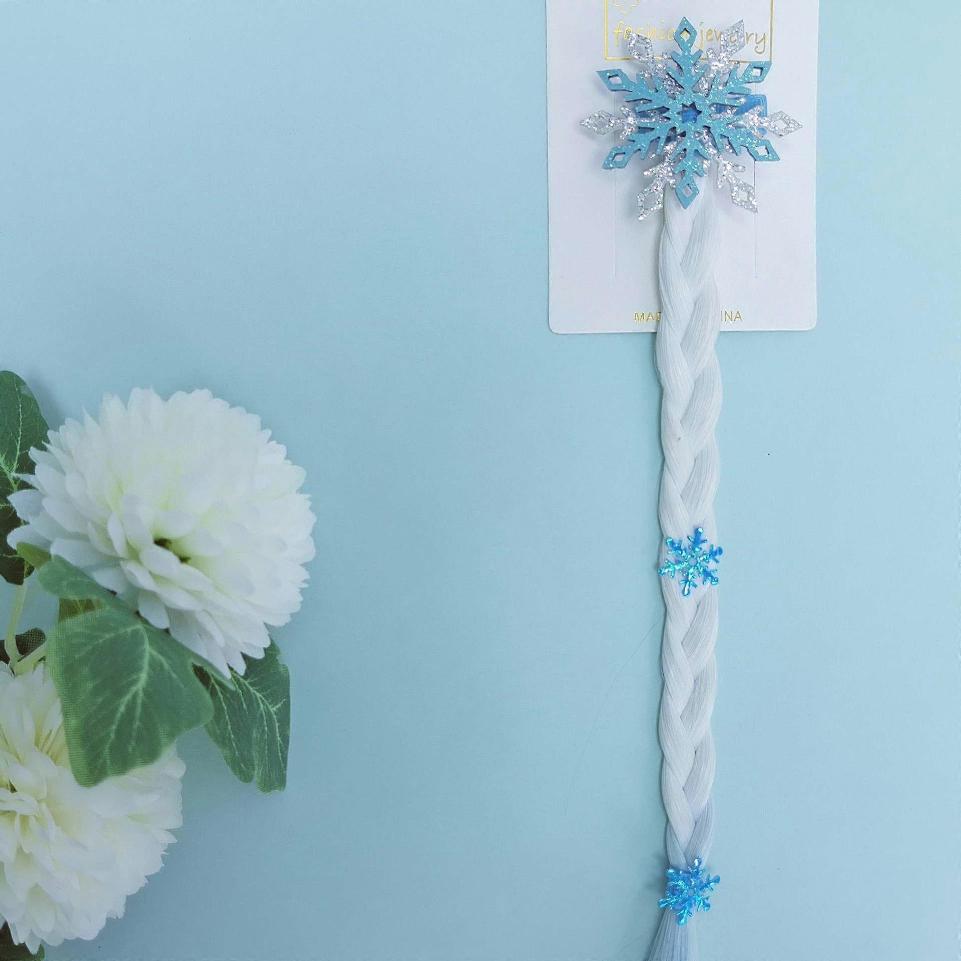 Crystal children's hair clip, white braid, Korean style, sweet and cute wig for babies and children.