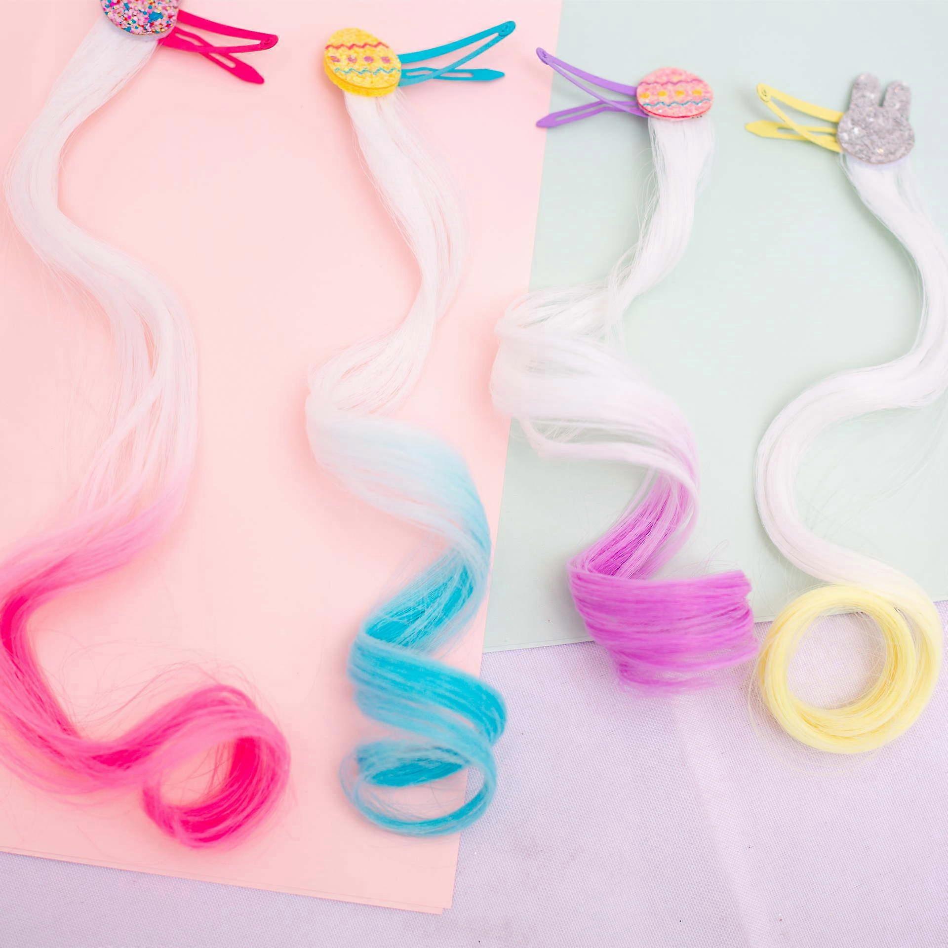 Cute bunny wig hair clip set for children, four-piece children's wig hairpin, Easter egg children's wig gradient hair