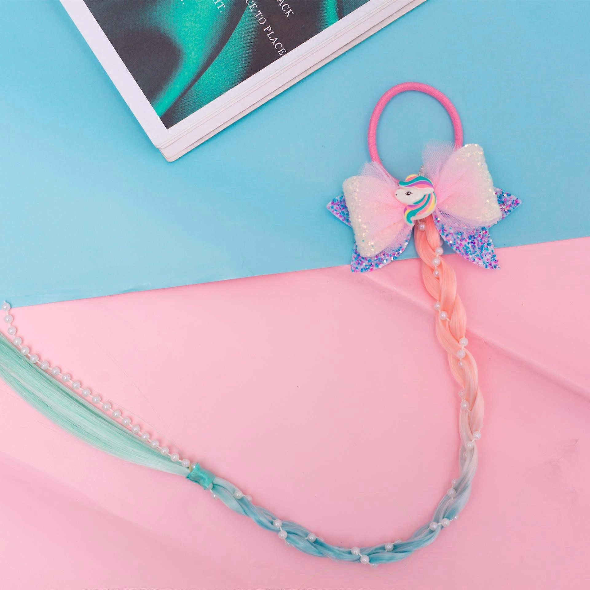 Onion skin bow children's hair tie sweet unicorn girl's wig hair rope pearl braid hair accessory