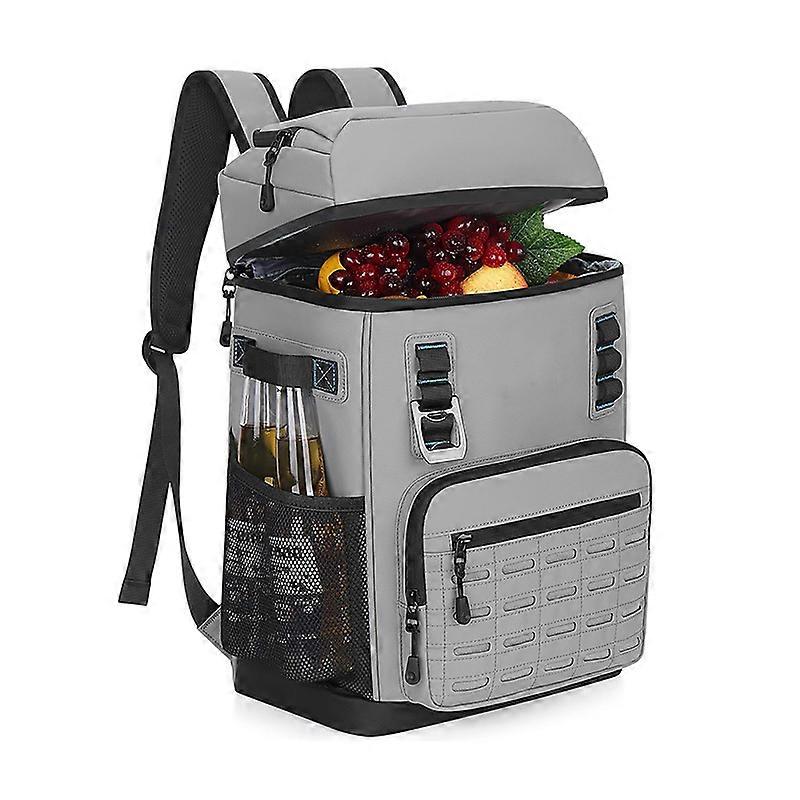 Ice pack cooler backpack with 2 insulated compartments, leak-proof, waterproof, suitable for beach picnics.