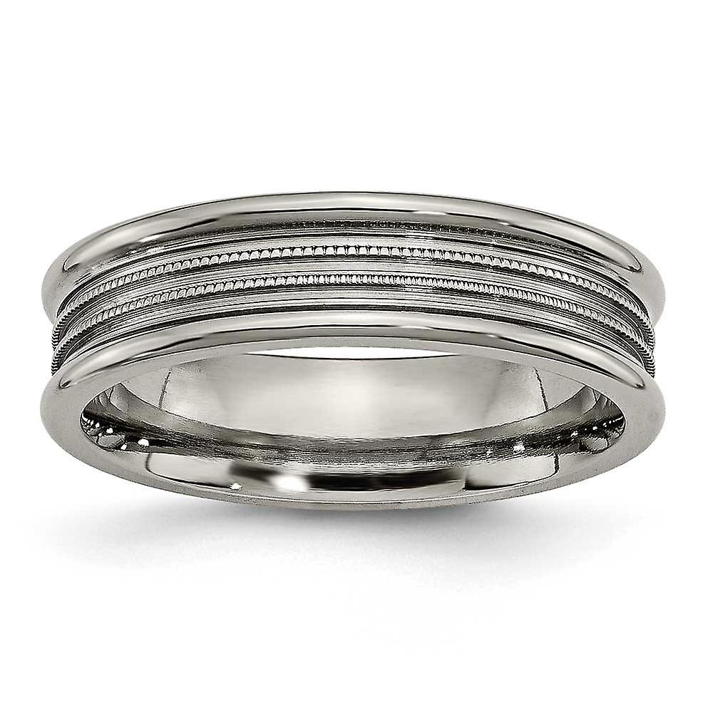 Titanium Grooved Beaded 6mm Polished Band Ring - Size 10.5 - In Titanium - Product Attributes: - Engravable - - Thickness: < 2 mm - Band Width: 6 mm - Finish: Polished - Engravable: Yes -