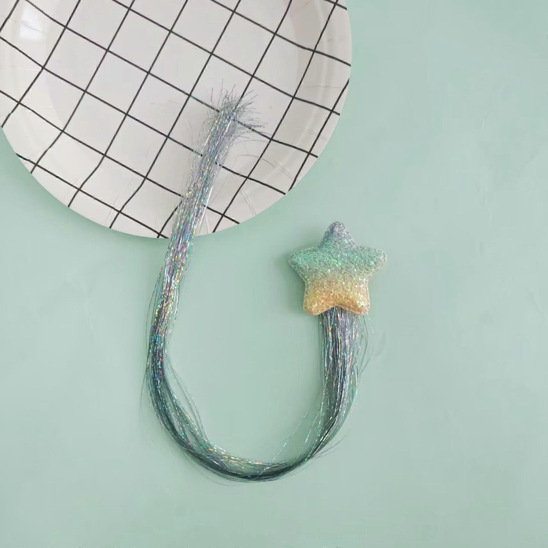 iridescent glittery five-pointed star silver laser rain silk wig children's hair accessory princess hair