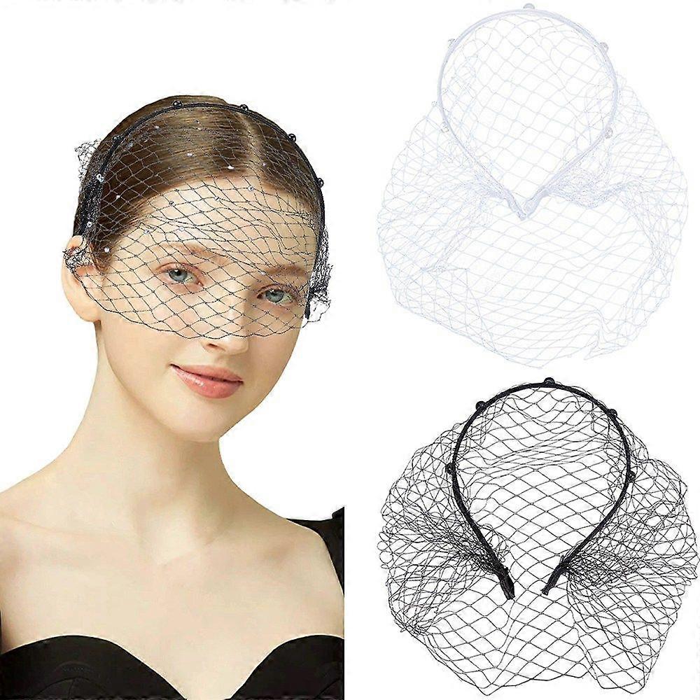 2pcs 2 colors Bridal Pearl Mesh Veil Cloth Hair Bands Hair Accessories for Women Mixed color Inner Diameter: 128x110mm 1pc/color